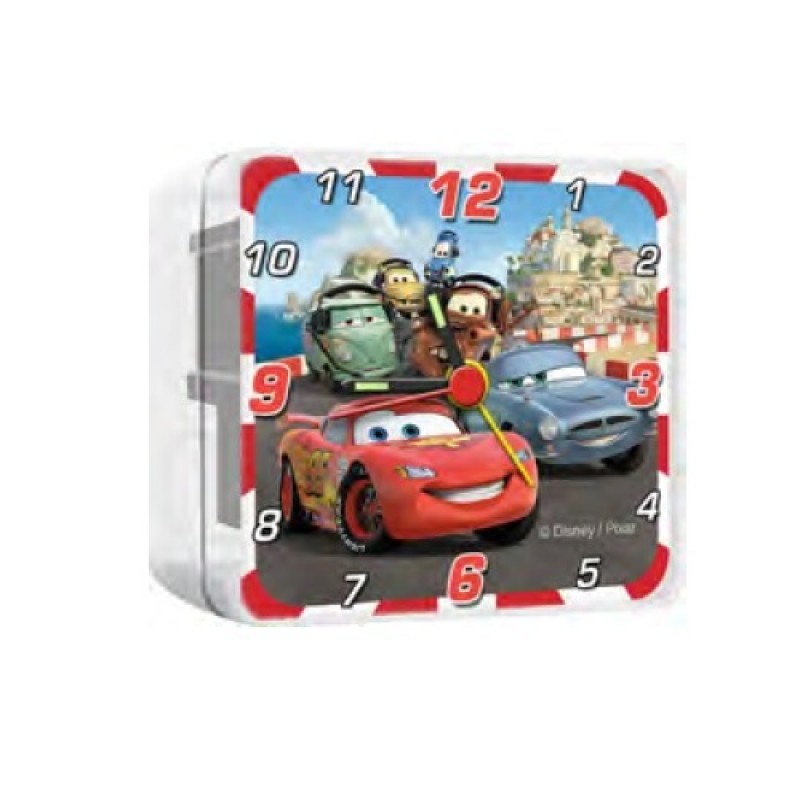 Este un ceas Disney Cars din plastic transparent, desteptator.